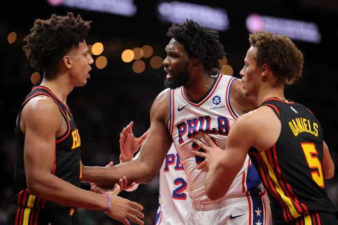 北京时间12月15日,NBA常规赛76人客场对阵老鹰,恩比德一度肘击奥孔古引发冲突,76人在最多落后11分情况下,持续反扑追分缩小差距,格莱姆斯错失扳平三分,最终76人117-120遭老鹰赛季双杀,且76人已经对老鹰交锋5连败。